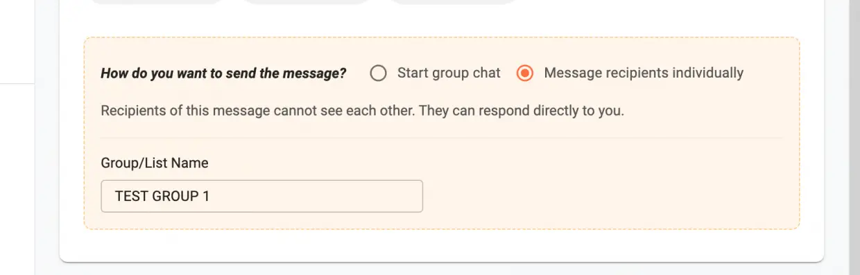 - To send messages individually without group messages, select ‘Message recipients individually.’ Optionally, name this group/list.
